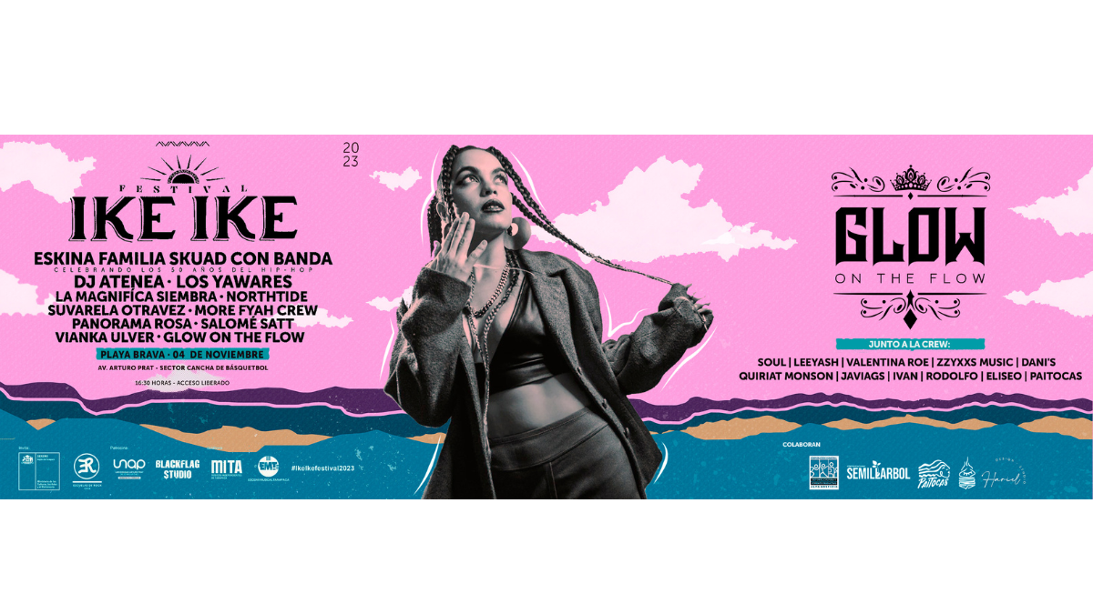 IKE IKE Festival es un escenario que reunirá a exponentes de la música local y nacional. Este año los sonidos están marcados por el rap, fusión afrobeat, dancehall, trap, rock y pop. Serán 11 artistas los que musicalizarán la tarde del sábado entre los que se encuentra Skina Familia Skuad, DJ. Atenea y Los Yawares, además de los locales La Magnífica Siembra, Northtide, Suvarela Otravez, More Fayah Crew, Panorama Rosa, Salomé Satt, Vianka Ulver y Glow on the Flow.