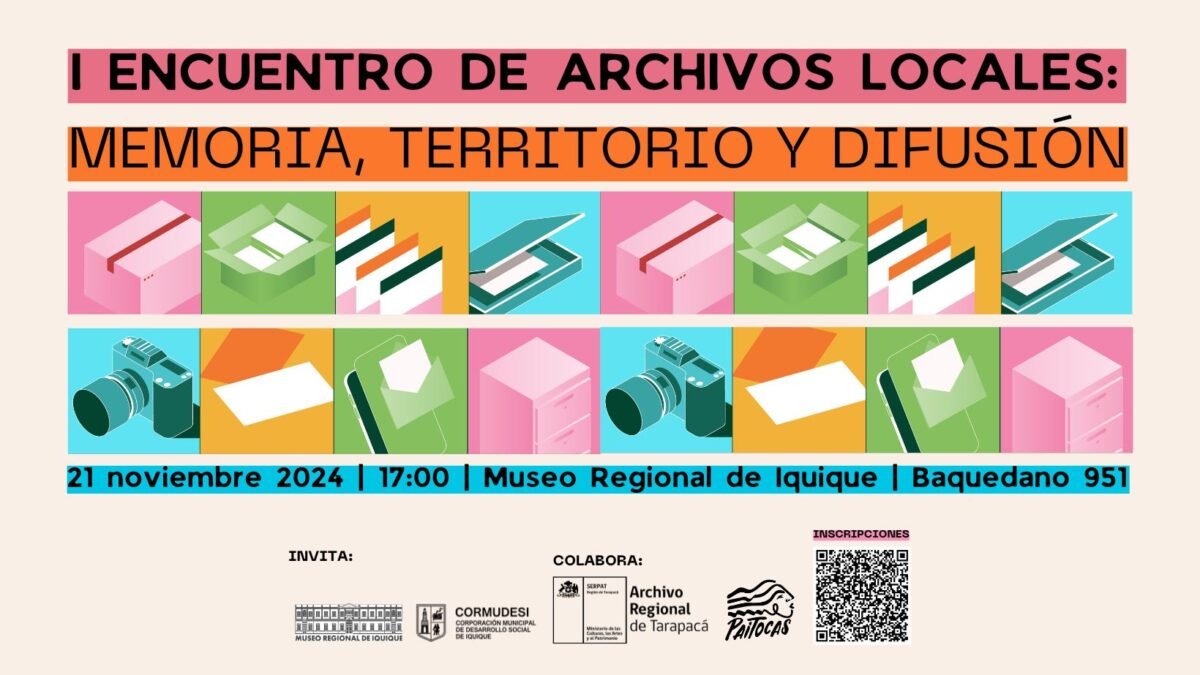 El encuentro se desarrollará este jueves 21 de noviembre desde las 17:00 a 20:30 horas en el Salón Pampino del Museo Regional de Iquique. El espacio busca generar un momento de diálogo, reflexión y aprendizaje colectivo en torno a las labores que realizan estos espacios desde la perspectiva de ser, hacer y crear archivos en la región de Tarapacá.